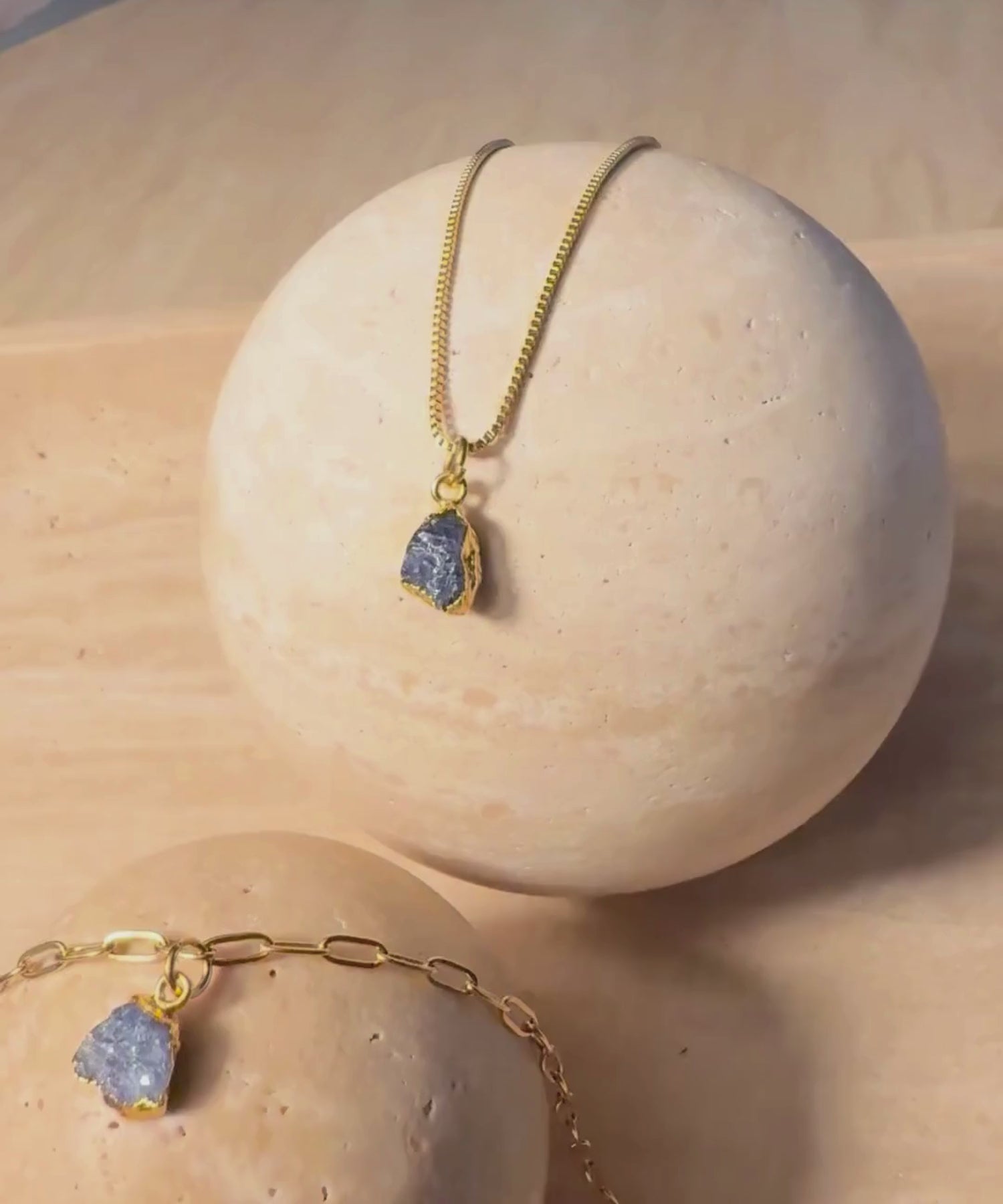 - Raw Sapphire Gold-electroplated pendant (approx 10mm)